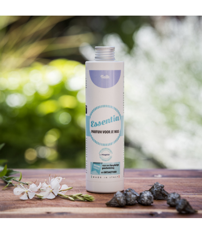 Wasgeluk Talk 500ml van het merk Essentia is een wasparfum dat uw wasgoed een heerlijke geur van talkpoeder geeft tijdens het wassen. Het is geschikt voor alle soorten wasgoed en kan worden gebruikt in zowel de wasmachine als bij het handwassen.